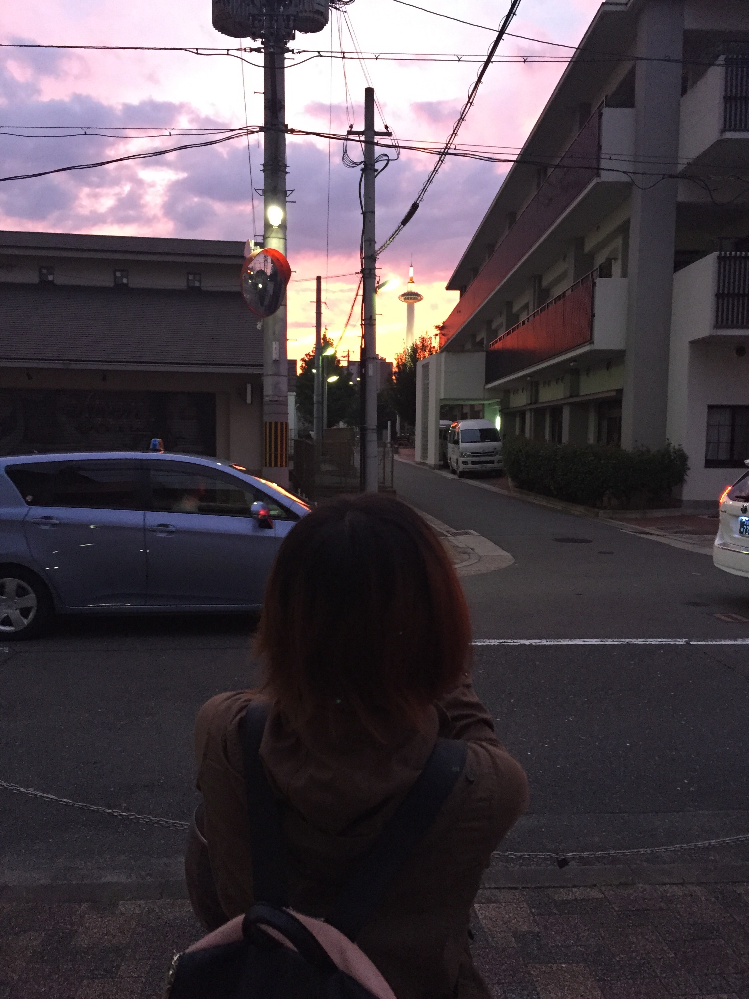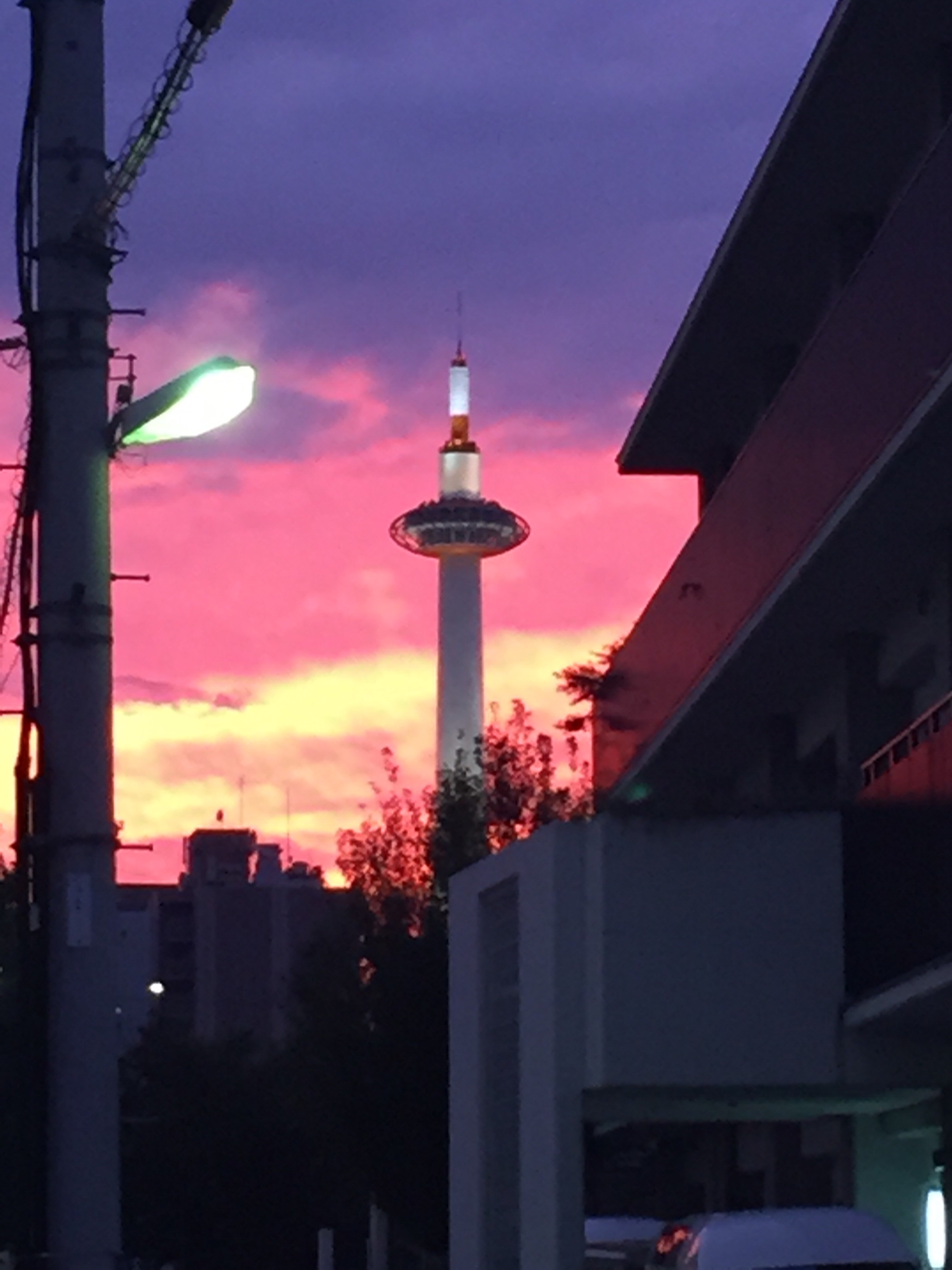 写真は先日、稽古後に撮った京都タワーと夕焼け。