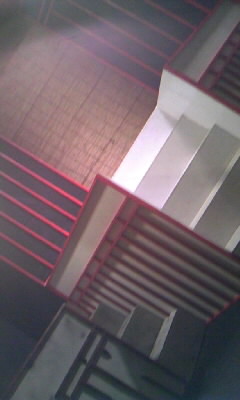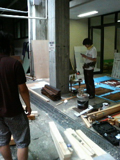 稽古後のミーティングで隣の建物へ