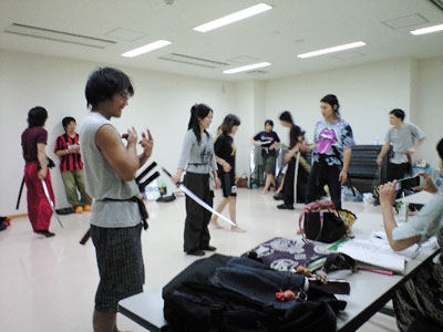 写真は、稽古後のミーティングの風景。