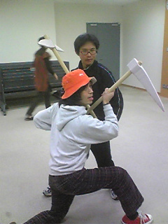 というわけで、本日ダンサーズに刀が配られました。小道具班謹製のすばらしく軽い刀です。