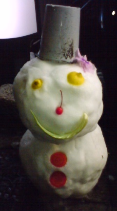 写真は、デーモンくんとゆきだるま。