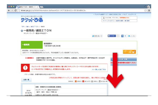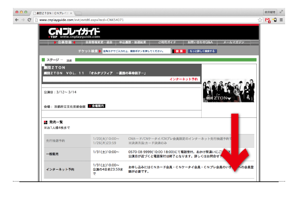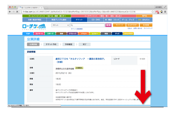 [3]公演詳細を確認したら、画面を下の方へスクロールしてください。