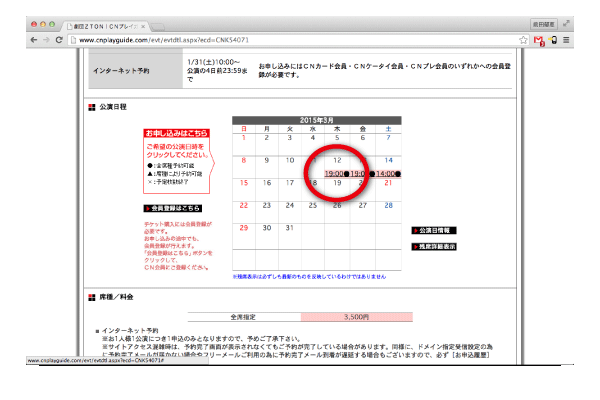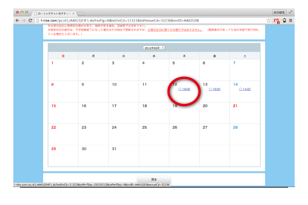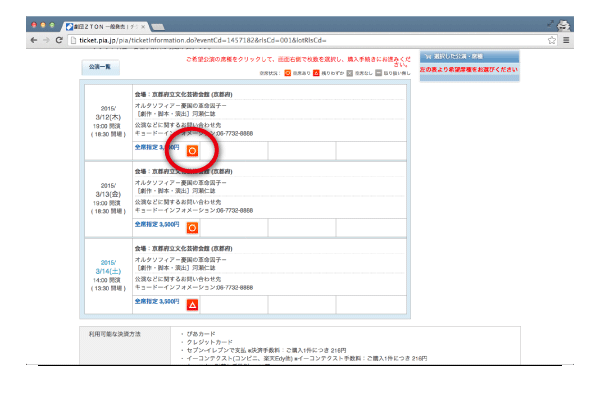 [4]ご希望の日時の「○」ボタンをクリック。