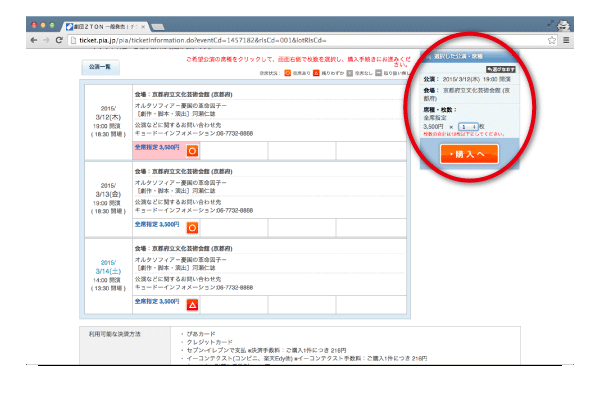 基本的には、会員登録をしておき、画面の案内に沿って入力・クリックをすれば簡単にチケットを購入することができますので、この機会にぜひ