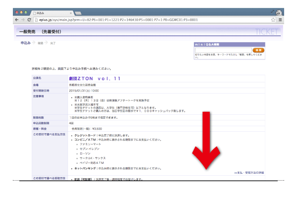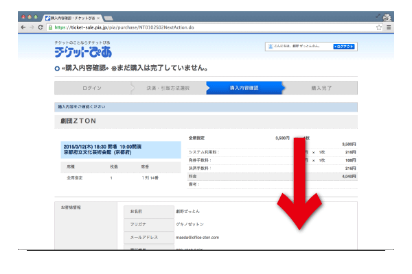 [5]購入したいチケットの内容に誤りがないか確認したら、画面下へスクロールします。