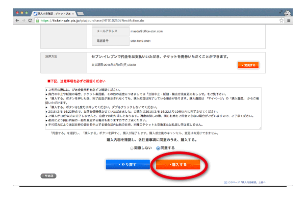 [9]注意事項をよくご覧になって、購入ボタンをクリックすると購入手続きは完了です。