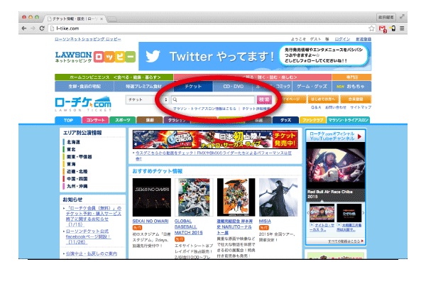 【ローソンチケット】[1]検索バーで「劇団ZTON」を検索します。