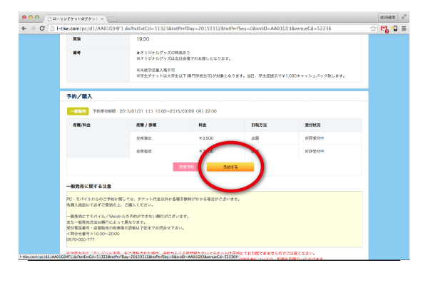 [6]「予約する」ボタンをクリック。