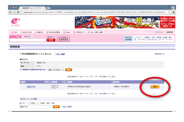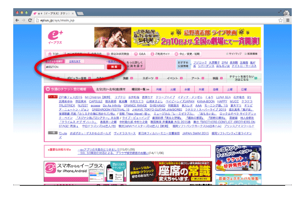 【e+(イープラス)】[1]検索バーで「劇団ZTON」を検索します。